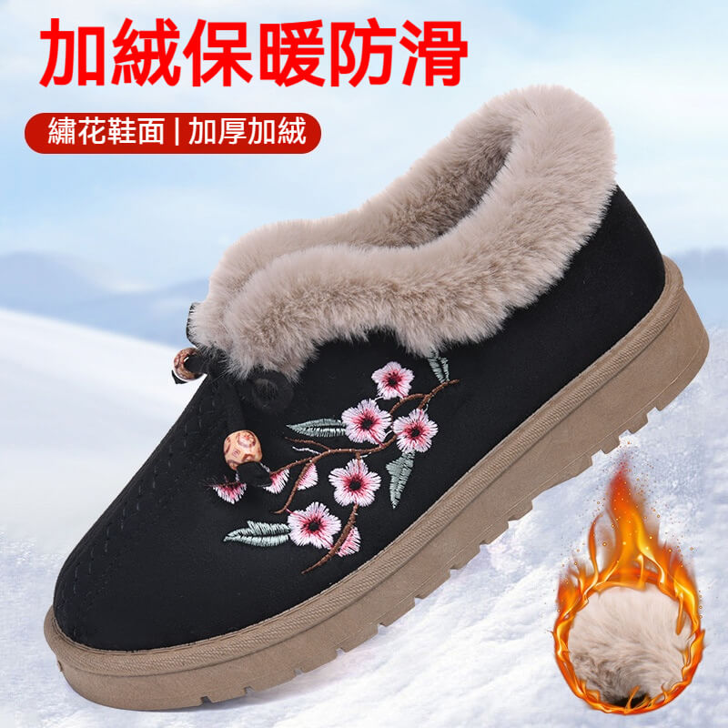 加絨防滑一腳蹬棉鞋,柔軟保暖絨毛內裡,360度鎖溫抗寒,立體防滑鞋底設計,雨雪天行走安心