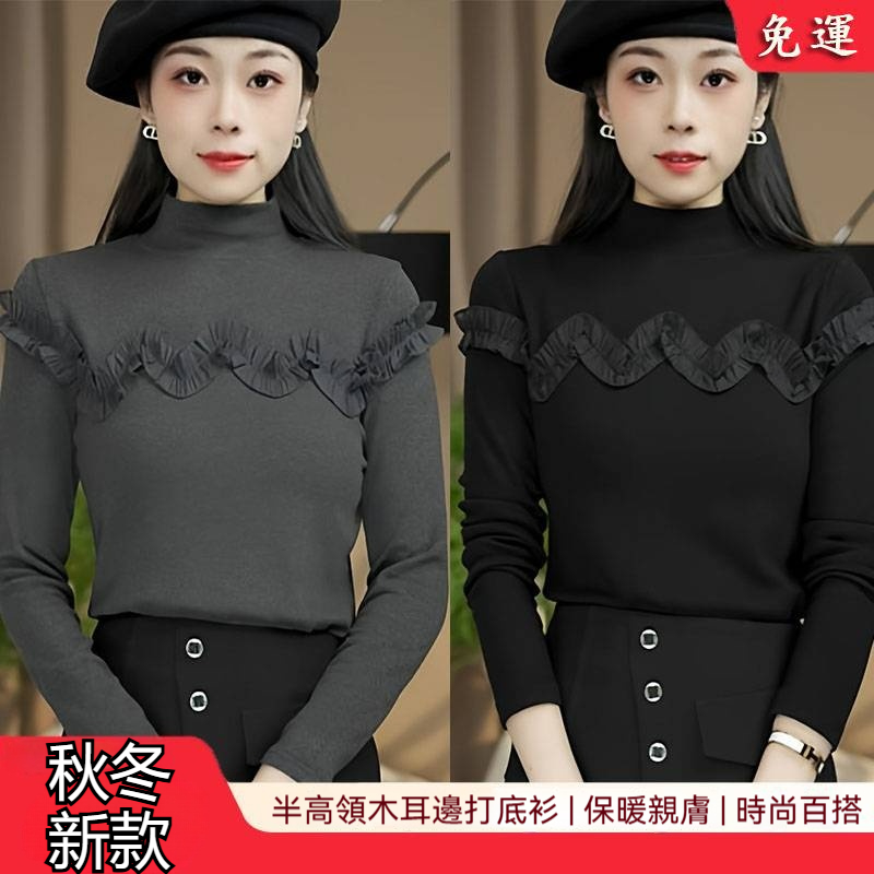 新款氣質木耳邊打底衫 柔軟親膚 時尚保暖 穿上顯膚色更年輕 降溫防寒必備款