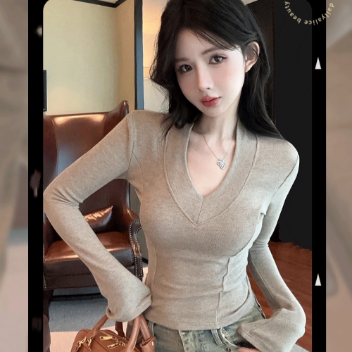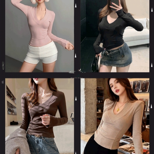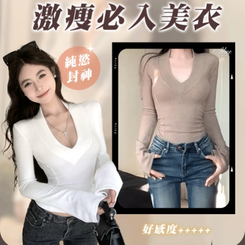 這件正肩深V針織打底衫上身真的好好看!雙面磨毛,保暖又顯瘦,單穿顯魅力,時尚百搭,配任何外套都有新鮮感